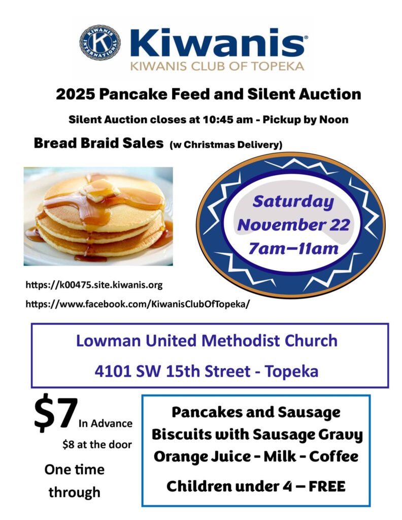 Kiwanis Club of Topeka meets in person on the 2nd and 4th Mondays. Kiwanis is a global organization.